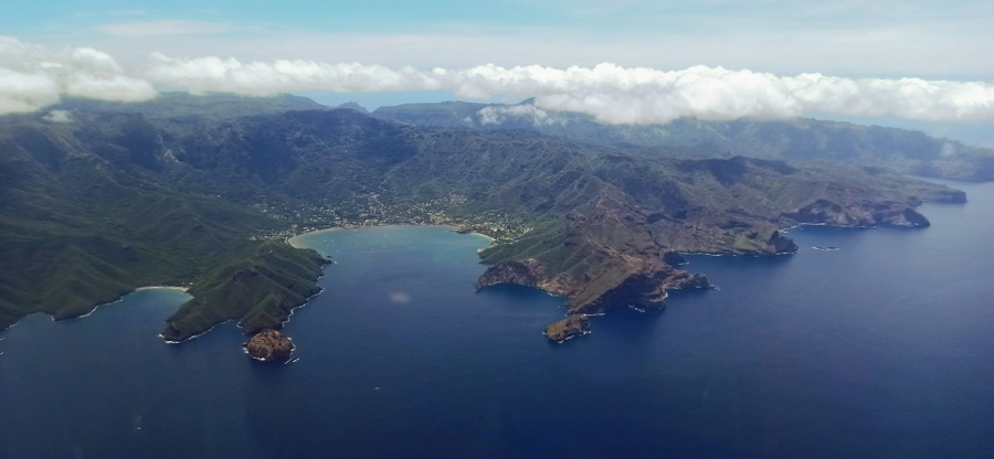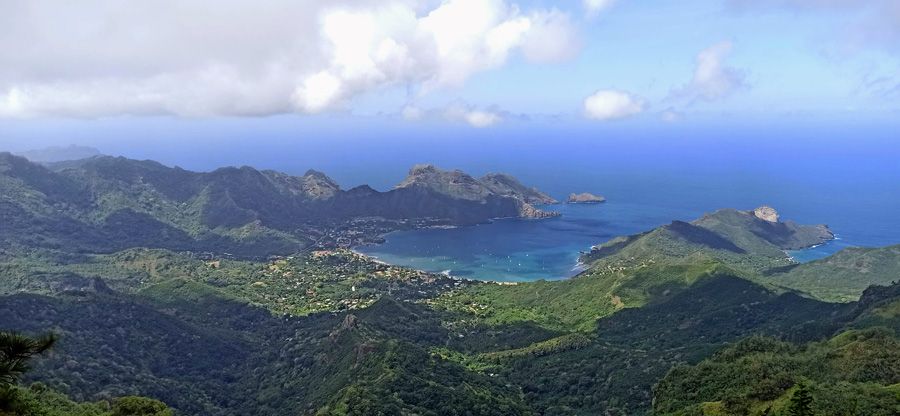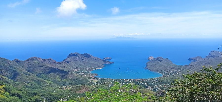 South of Nuku-Hiva, Taiohae Bay is formed by a volcanic crater where Taiohae, the main village of the island, lays. It is the central port of the Marquesas, the first island and the arrival point for boats from America and Tahiti. Taiohae brings together the administrative, economic, medical and educational center of the Marquesas Islands.